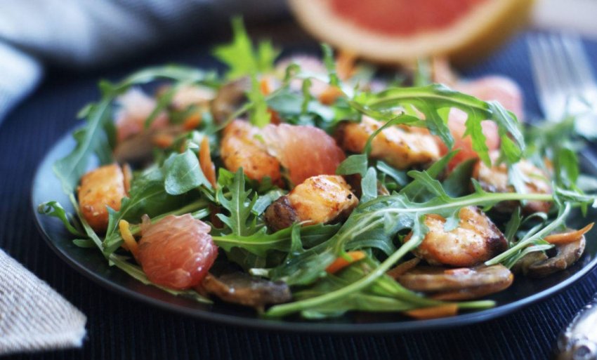 - Часточки грейпфрута очистити від перегородок, розділити на дрібні частини вручну.