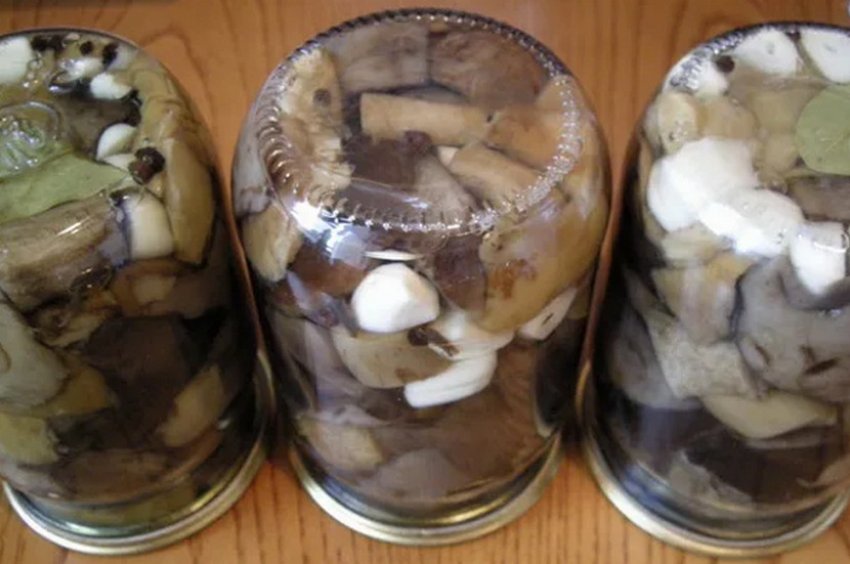 - Після варіння воду зливають, гриби остуджують і поміщають у стерильні півлітрові банки.