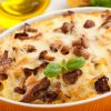 - У розігріту олію покласти гриби і цибулю. Все обсмажити.