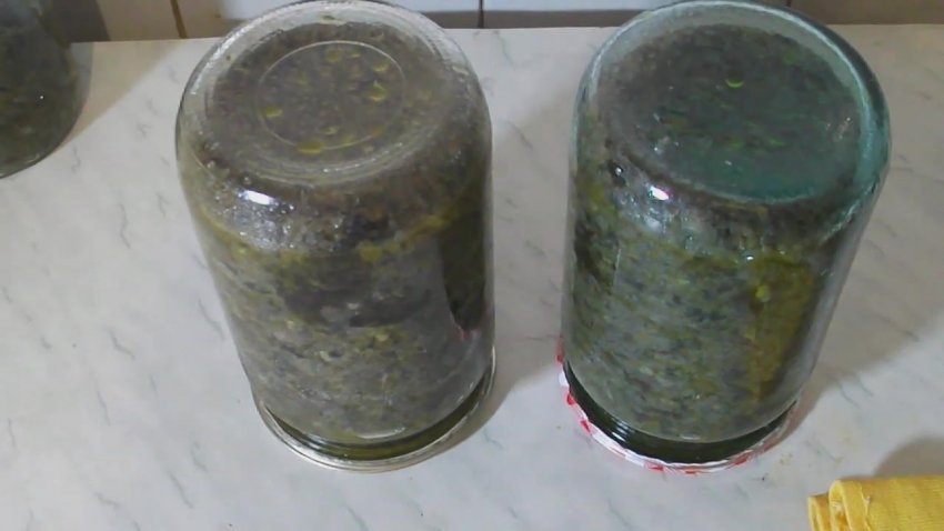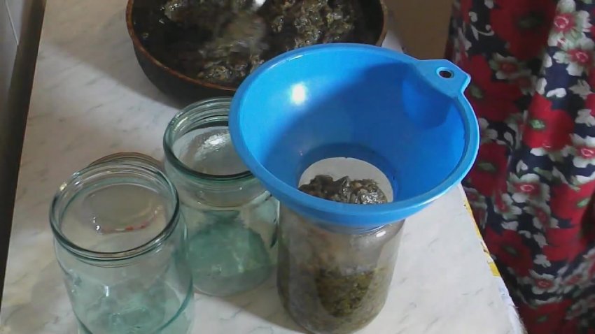 Банки стерилізувати 20 хвилин у каструлі за тихого кипіння, підстеливши під них тканину. Банки перевернути донизу кришками й утеплити. Коли все охолоне, перемістити в прохолодне місце для зберігання: полицю холодильника, підвал, льох.![]()