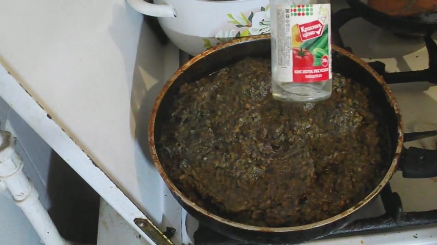 Потім до підосичників кинути підсмажену цибулю з морквою, хмелі-сунелі, іншими спеціями, столовою ложкою солі. Усе ретельно перемішати і смажити ще півгодини, постійно помішуючи. За 5 хвилин до кінця приготування влити оцет із розрахунку: 1 чайна ложка на 1 кг грибів, тобто 2 чайні ложки.![]()