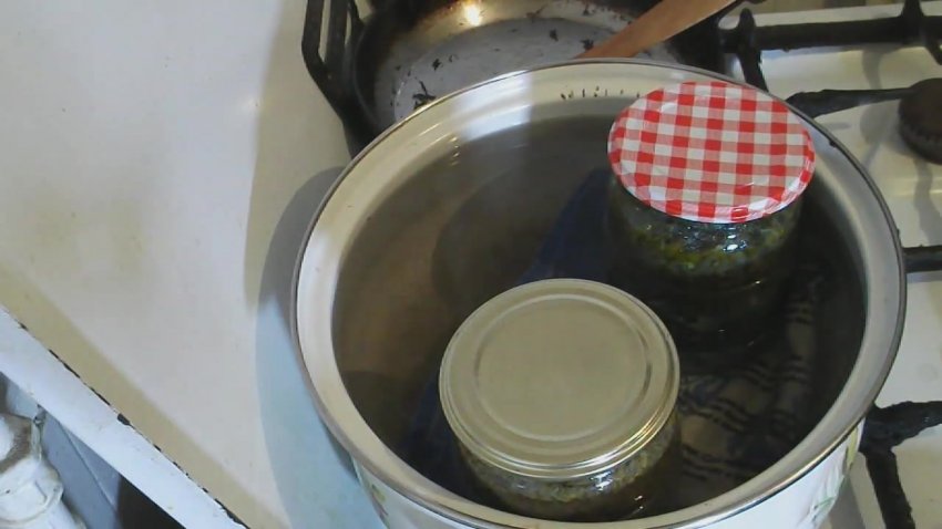 Дістати консервацію з каструлі, закрити кришкою (або закатати). Перевернути догори дном.![]()