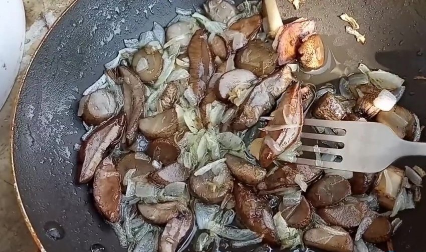 Почистити і порізати дрібно ріпчасту цибулю, а потім кинути до грибів. Коли цибуля трохи зарум'яниться - страва вважається готовою. На останньому етапі, наприкінці смаження, щоб страва вийшла смачнішою, можна додати шматочок вершкового масла. Загалом підосичники смажать 25-30 хвилин.![]()
