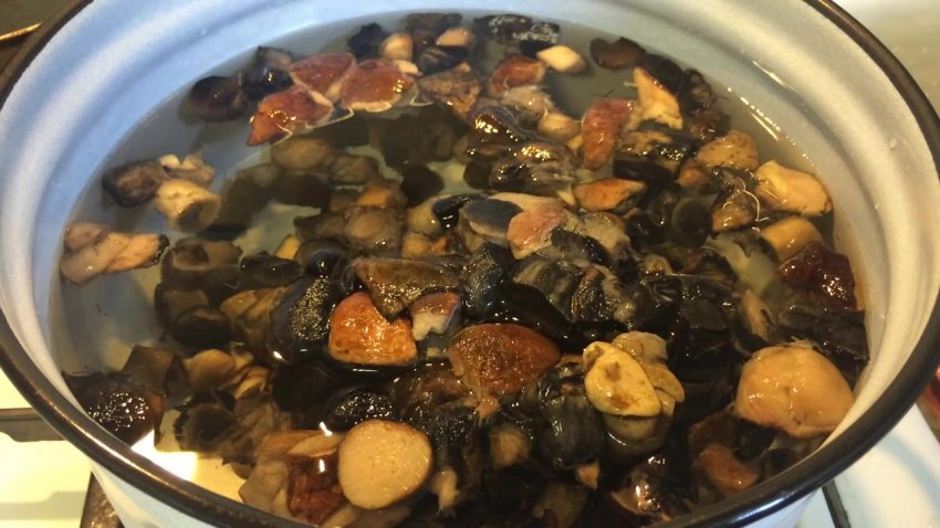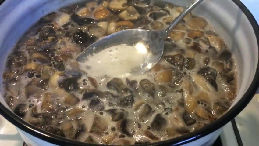 Воду підсолити і кинути в неї лимонну кислоту. Перекласти у воду підосичники. При цьому дрібні екземпляри можна класти цілком, а великі треба різати на кілька частин.![]()