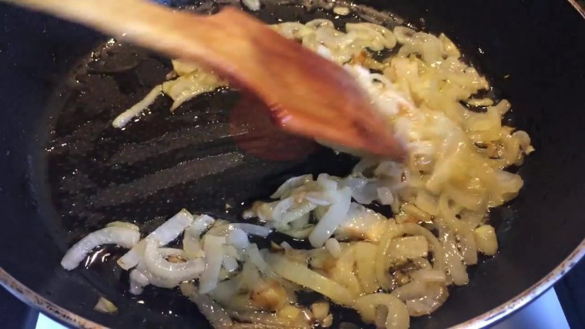 Поки суп вариться, зробити засмажку. Для цього почистити і порізати цибулю, обсмажити її на соняшниковій олії.![]()