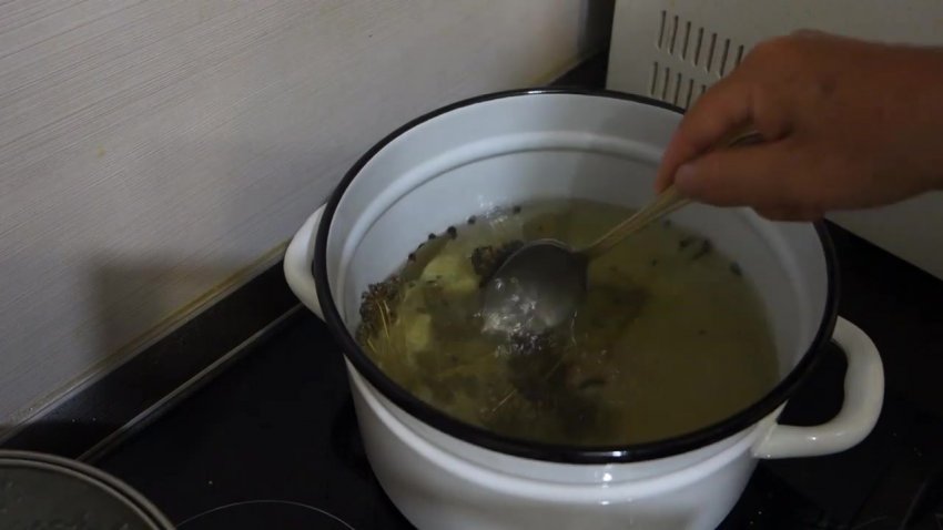 У воду для маринаду кинути сіль, цукор, сухі прянощі. Потім помістити підосичники й довести до кипіння. Варити 20 хв. Наприкінці варіння все перемішати з 2 столовими ложками оцту.![]()