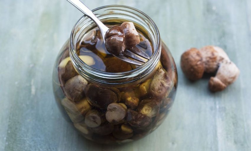 - Проварені гриби укласти в банку і залити розчином, який щойно закипів, після чого додати 2 ст. л. оцту.