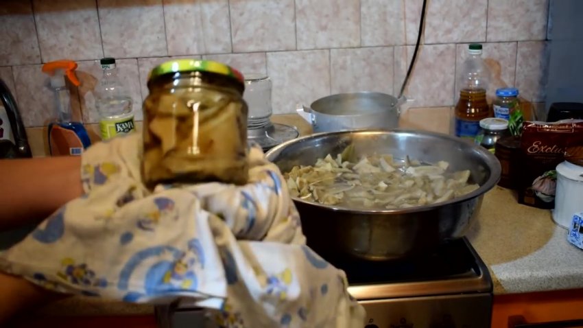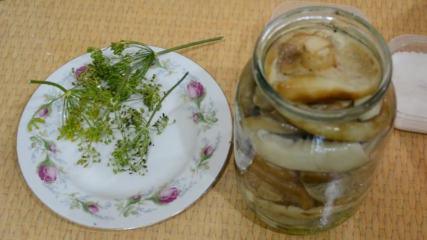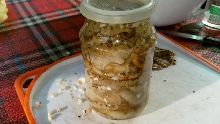 Потім залити гарячою водою, в якій варилися капелюшки. Закрити кришками з капрону. Остиглу консервацію прибрати в прохолодне місце.![]()