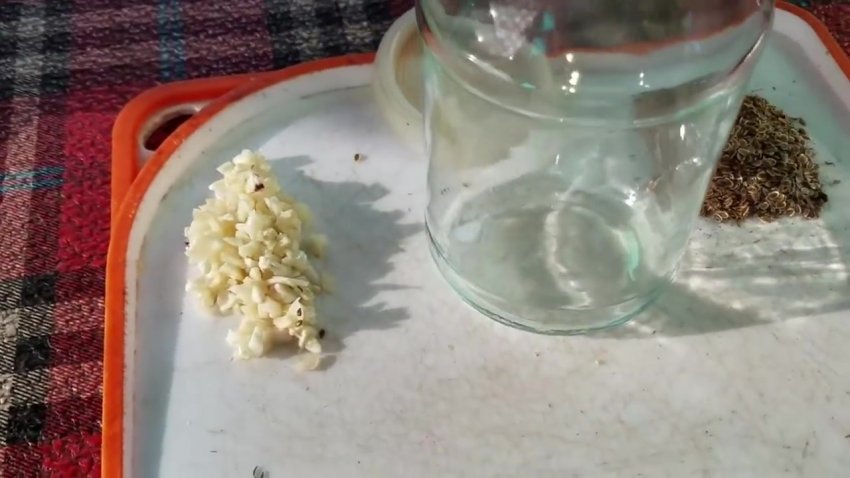 Додати пару зубців часнику, 2 ст. л. солі і кріп. Поставити на вогонь, після закипання знімати з вогню через 15-20 хвилин.![]()