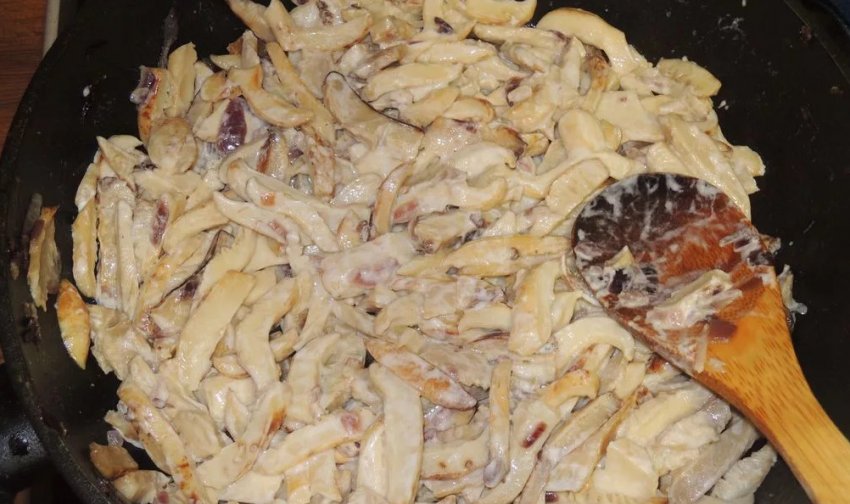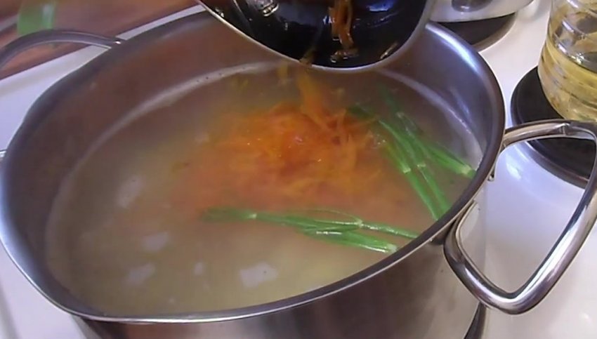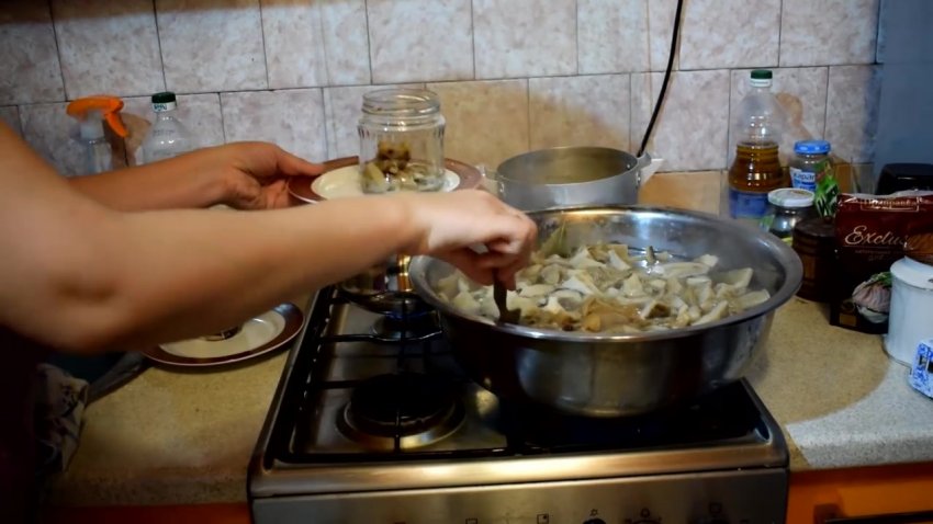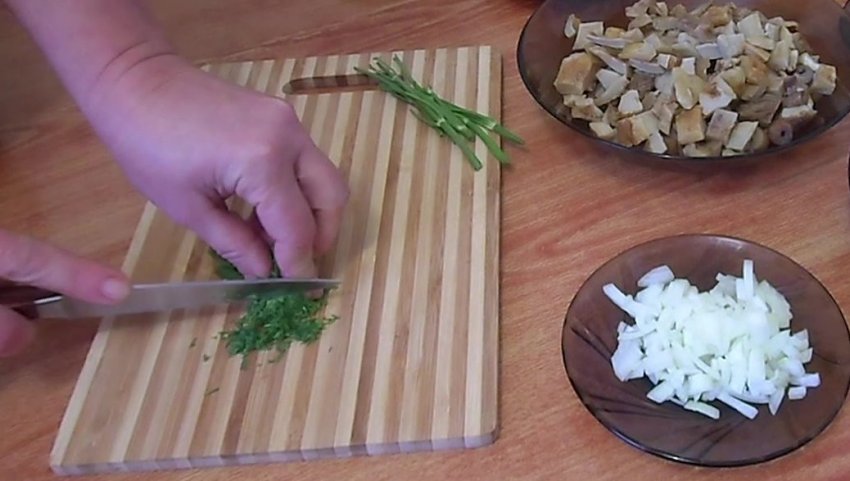 - Вимочені та відварені гриби, посмажити протягом 10 хвилин.