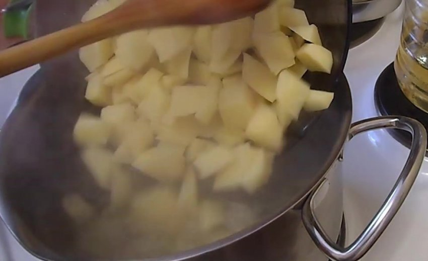 Коли закипить вода, відправити в каструлю картоплю і варити 8 хвилин.![]()