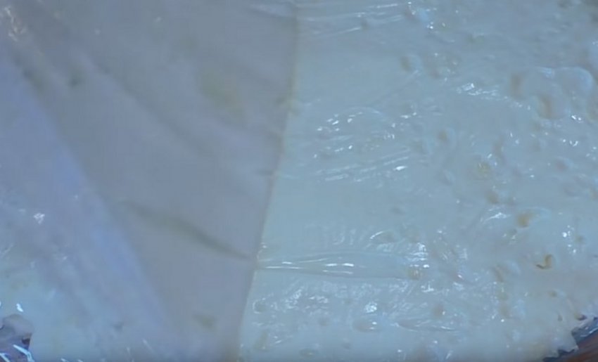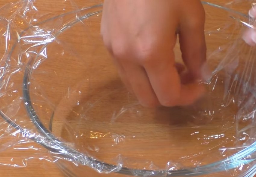 Зварити м'ясо з додаванням солі, лаврового листа, перцю, спецій, картоплю, яйця і моркву відварити, а дно і стінки ємності висотою 5-6 см застелити харчовою плівкою.![]()