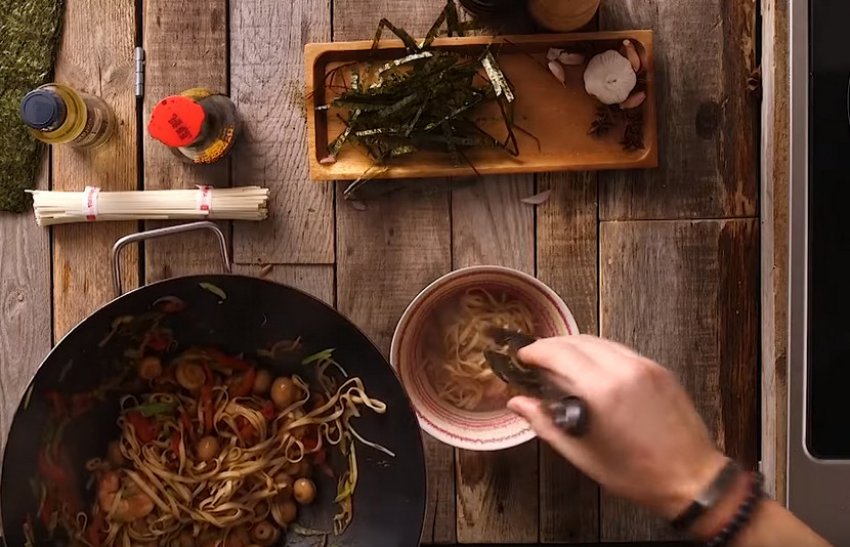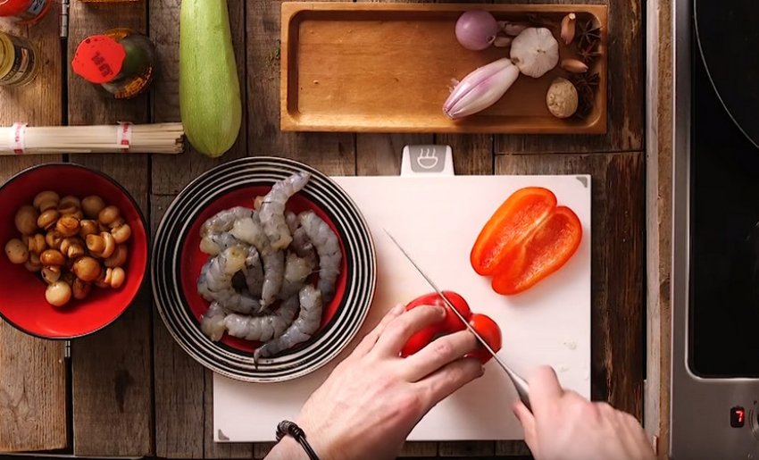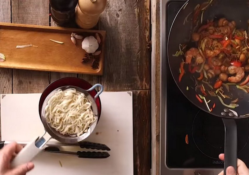 Удон із креветками та солодким перцемВидео-рецепт: Удон із креветками та солодким перцем