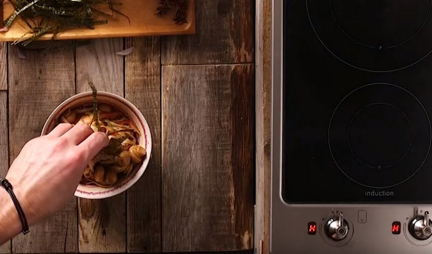 Додати креветки та гриби. Обсмажити протягом 10 хвилин.![]()
