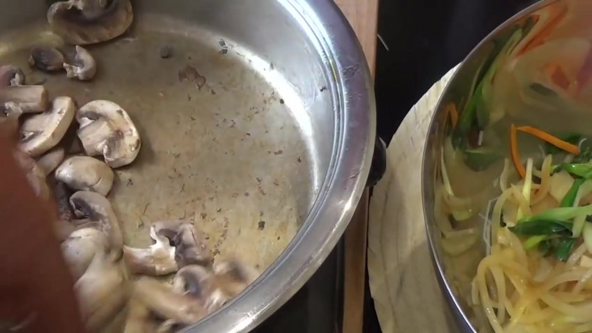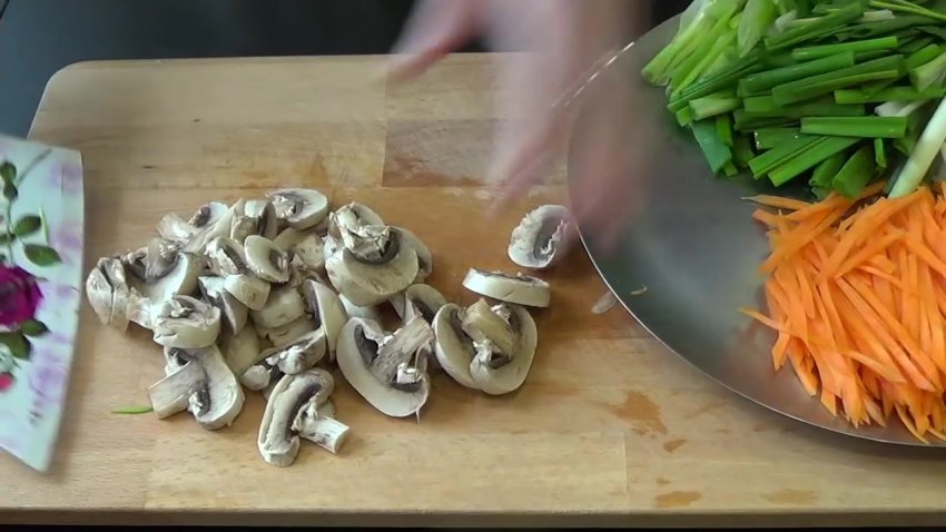 Рецепт фунчози з печерицями та овочамиВидео-рецепт: Рецепт фунчози з печерицями та овочами