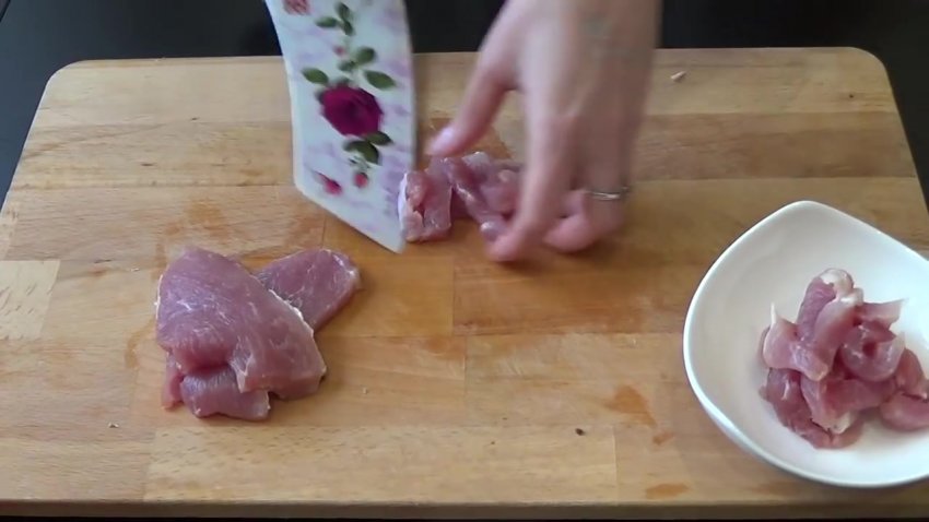 необхідно нарізати на тонкі довгі скибочки, а потім нашаткувати смужки шириною приблизно 2-3 см.![]()