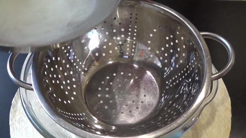 закінчення часу перевірити фунчозу, пропустити вміст чаші через друшляк. Коли вся зайва вода стече, перекласти в суху миску.![]()