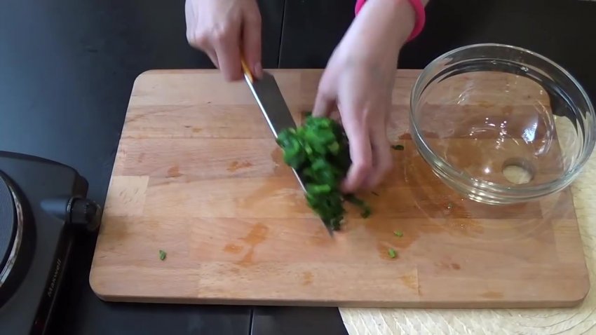 часник і подрібнити три зубчики.![]()
