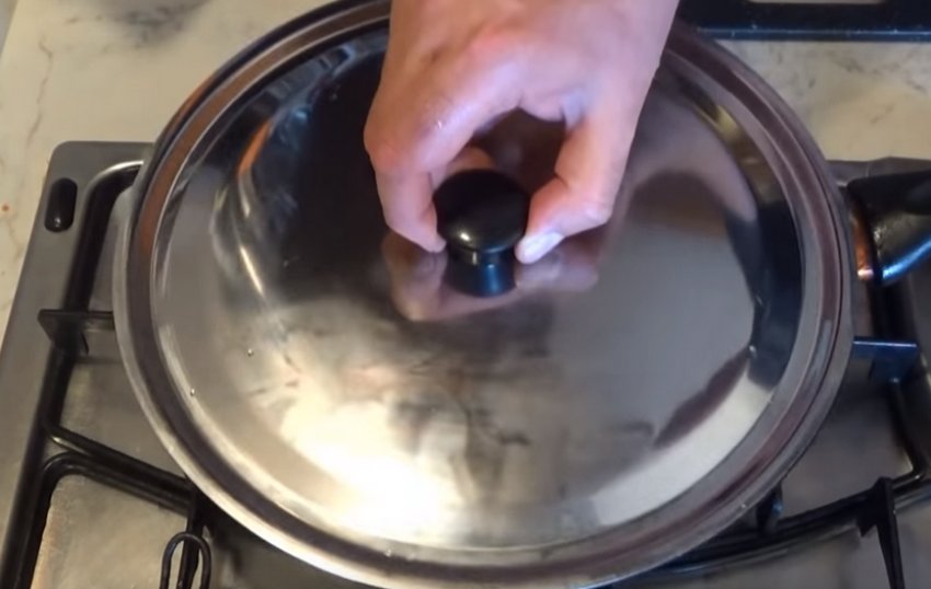Прибрати кришку і просмажити до випаровування вологи.![]()