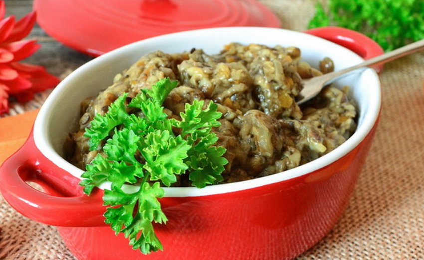 перекрутити на м'ясорубці, перекласти у великий сотейник або казан і тушкувати 1,5 години. За 15 хвилин до повної готовності необхідно додати в грибну суміш сіль, спеції, а також зелень кінзи та подрібнений часник.![]()