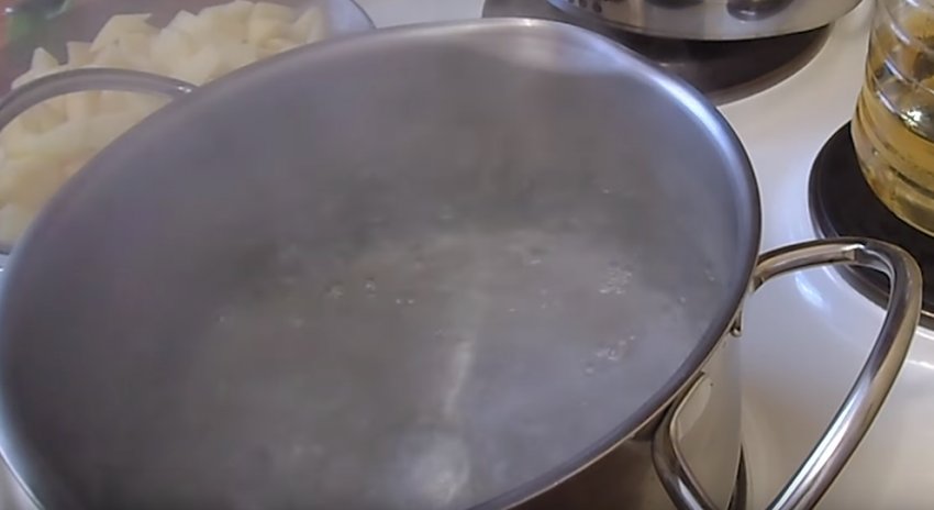 - У каструлю налити 2 л води, поставити на вогонь, довести до кипіння.