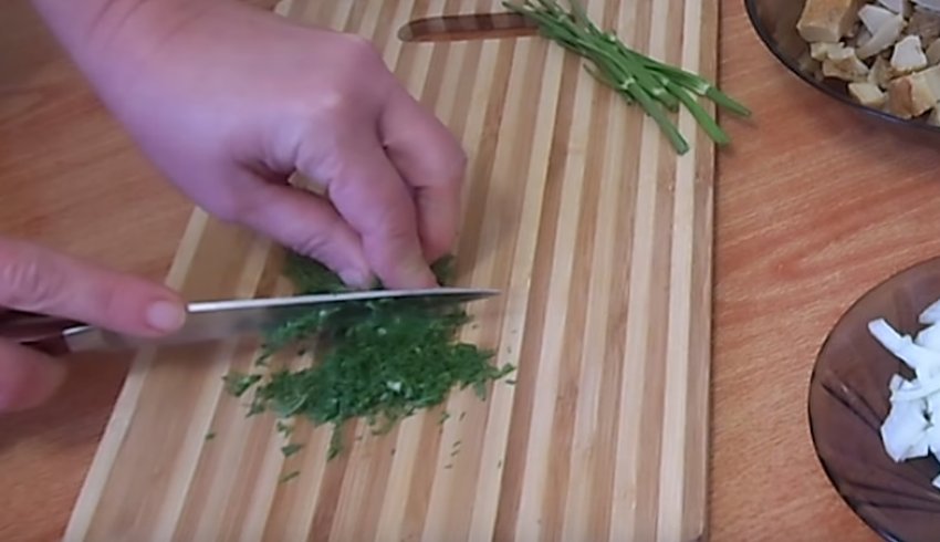 Від зелені відокремити черешки, а листочки дрібно нарізати.![]()