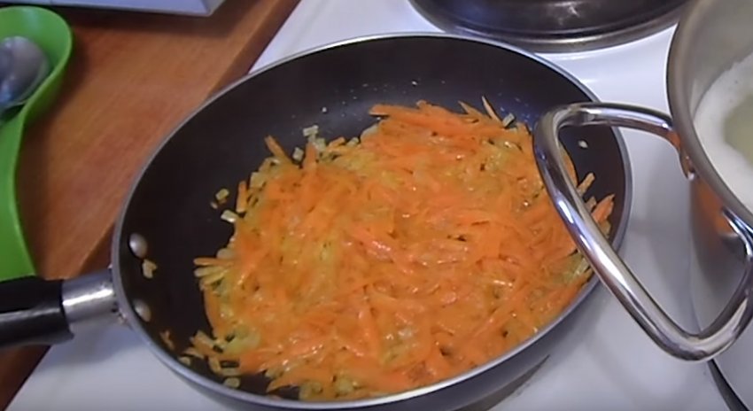 До цибулі висипати моркву, пасерувати 1 хвилину.![]()