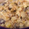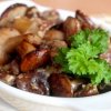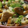 - На розігріту пательню з рослинною олією висипати гриби і цибулю, тушкувати на вогні середньої інтенсивності при активному помішуванні протягом 20 хвилин.