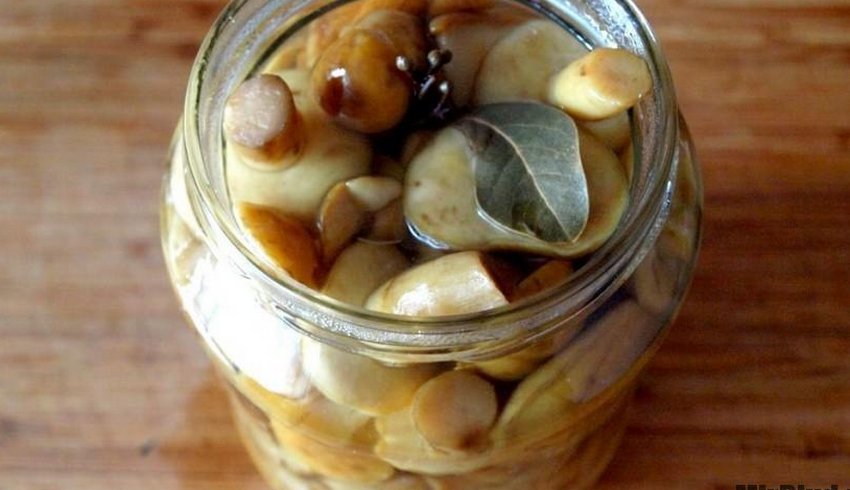 - Залити банки маринадом. Його рівень має бути вищим за грибний шар мінімум на палець. Герметично закрити тару стерилізованими кришками.