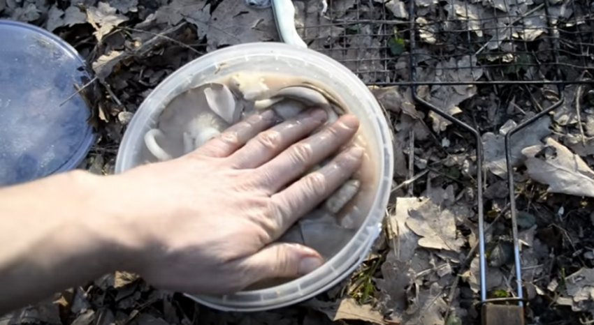 - Викласти в глибокий посуд, залити водою так, щоб вона покрила гливу повністю.