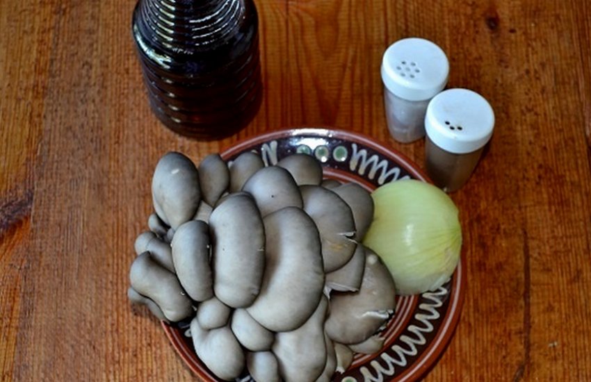 - Цибулю нарізати півкільцями, з'єднати з грибами, посолити, поперчити, додати оцет.