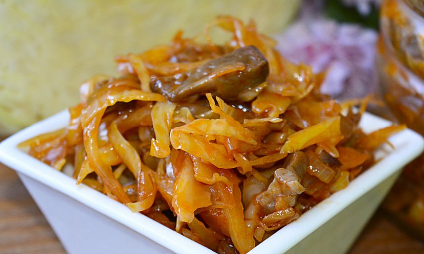 - Підсмажені овочі зняти з вогню, відправити до білокачанної капусти.