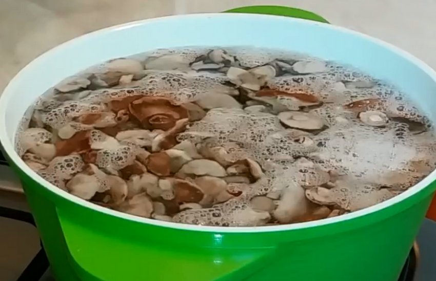 Перекласти в каструлю і залити приблизно літром води, щоб маслюки були повністю покриті. Поставити на вогонь і довести до кипіння.![]()