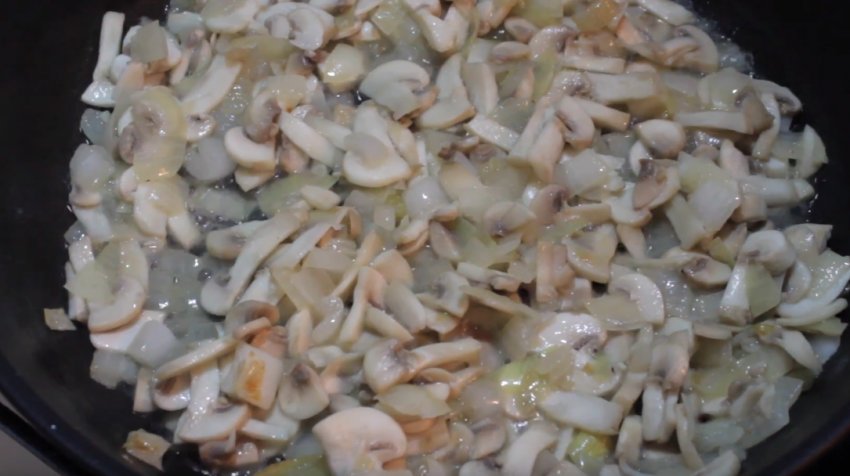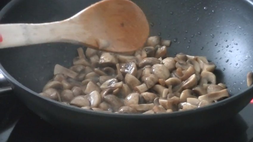 Додати печериці та смажити до випаровування рідини.![]()