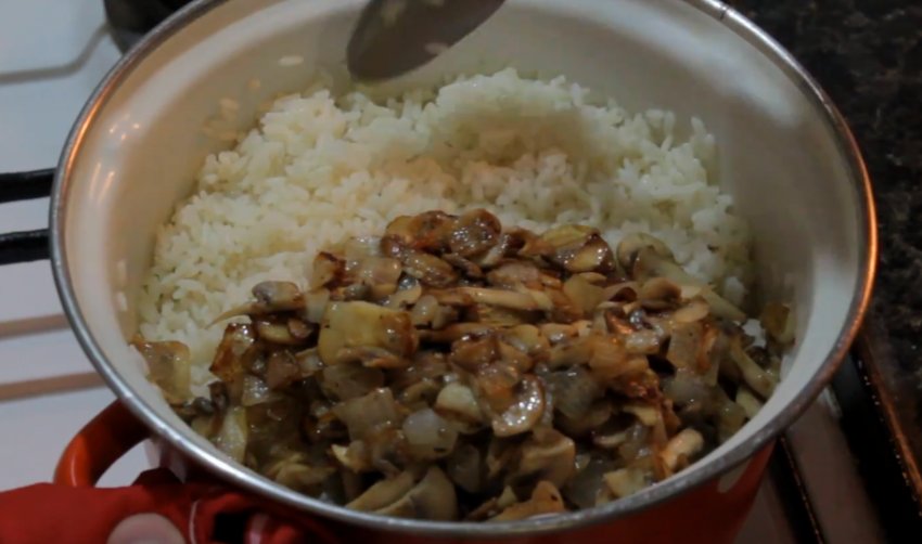 Із грибів найчастіше використовуються печериці, адже їх легко знайти свіжими взимку та влітку, проте в грибний сезон можна використовувати й інші наявні види. Для приготування гриби беруться тільки свіжі. Перед тим як приготувати рис з овочами, слід відібрати якісні плоди, без ознак дефектів і гниття.