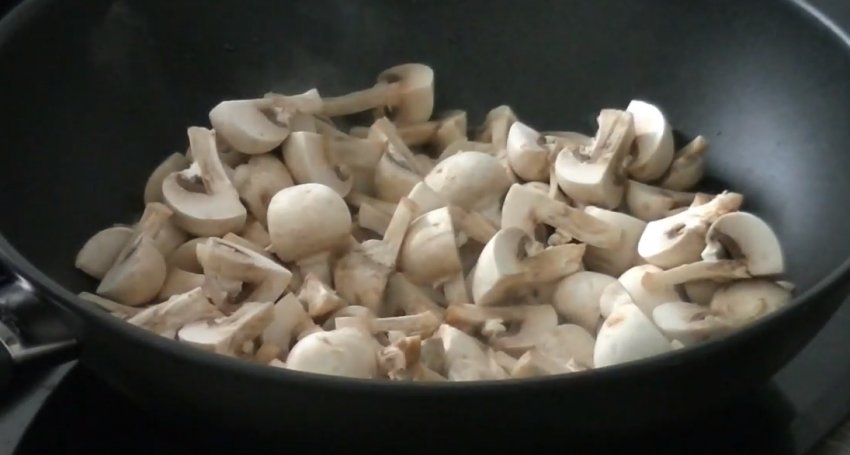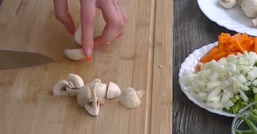 Печериці нарізати четвертинками.![]()