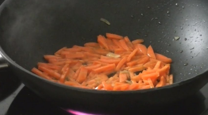 Додайте на пательню ще трохи олії та обсмажуйте моркву 3-4 хв.![]()
