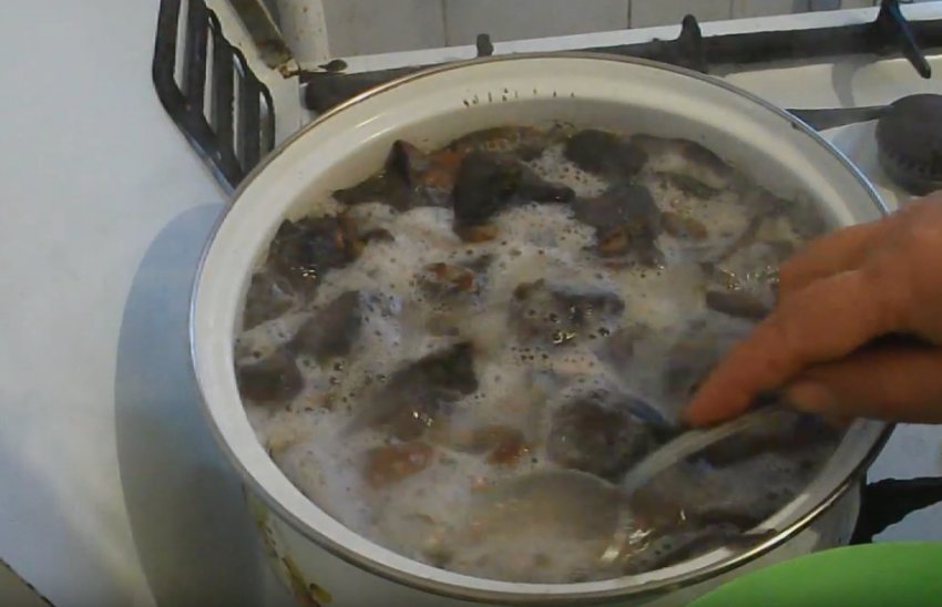 У процесі варіння обов'язково знімається піна, а з нею - сміття, яке спливає на поверхню. Після термічної обробки слід знову промити і просушити гриби від зайвої вологи. Потім їх перетирають, використовуючи м'ясорубку. Овочі теж слід ретельно помити, нарізати або натерти на тертці (згідно з рецептом).