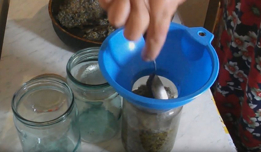 Підготовлені банки заповніть ікрою так, щоб між грибами і кришкою не залишалося повітряного простору.![]()