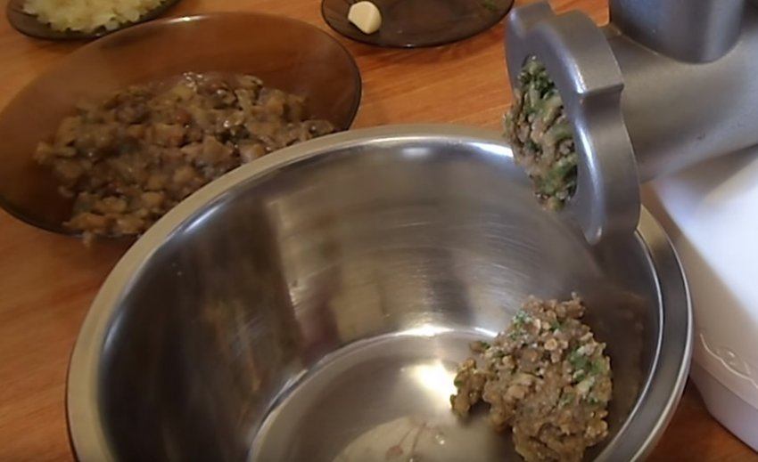 Після цього остиглі обсмажені гриби і цибулю, зелень кропу і часник слід пропустити через м'ясорубку.![]()