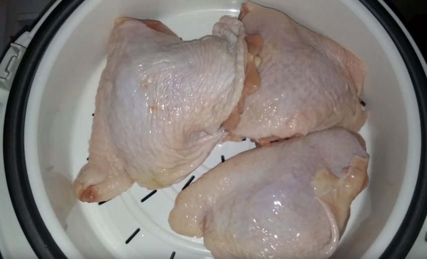 Поставте решітку (пароварку), викладіть на неї курку.![]()