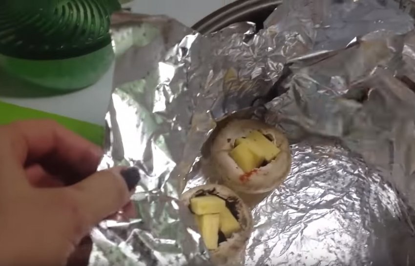 Прокладіть чашу мультиварки фольгою і помістіть туди гриби.![]()