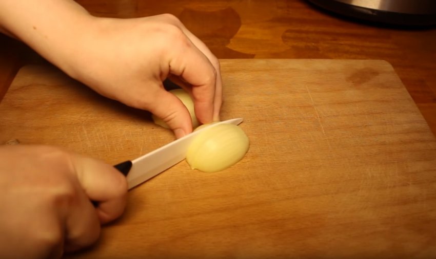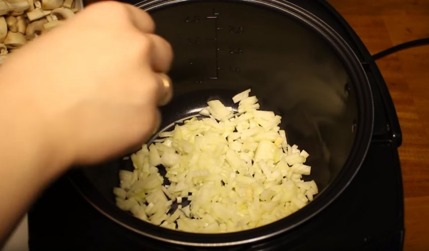 Викладіть цибулю на дно мультиварки.![]()