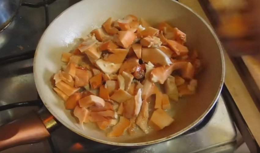 Провести нарізку промитого гриба шматками.![]()