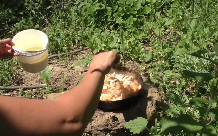З'єднати цибулю з трутовиком, добре перемішати, втираючи цибульну кашку в гриби.![]()