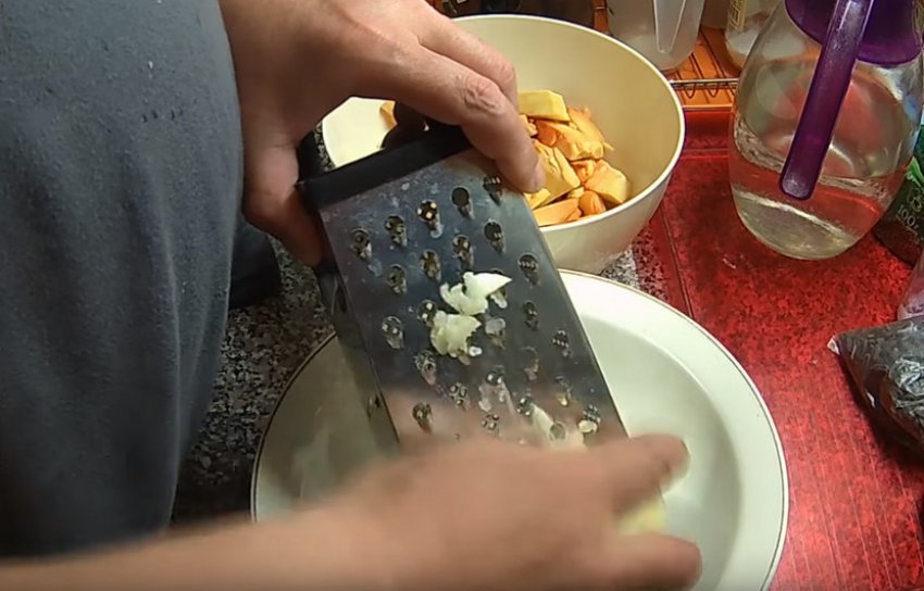 Цибулину натерти на тертці з великими отворами.![]()