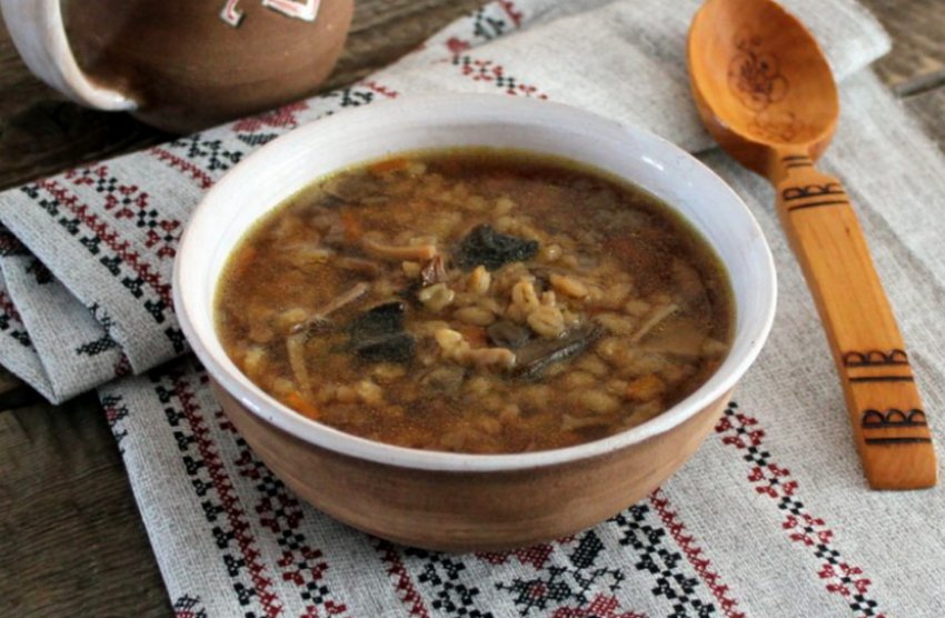 - У каструлю налийте воду, помістіть гриби та перловку, варіть 60 хвилин.