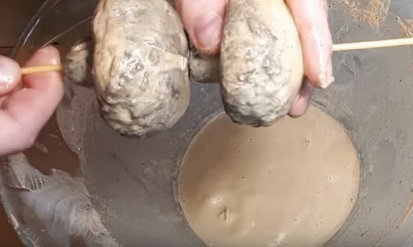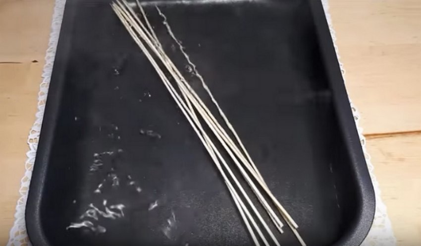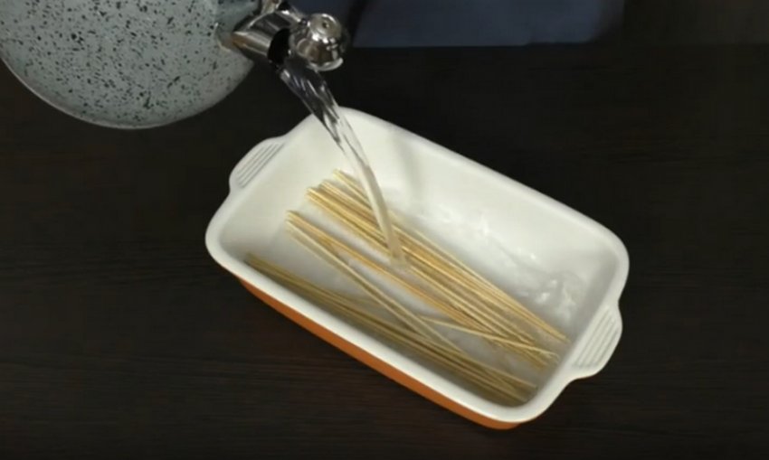 Перед запіканням необхідно попередньо замочити дерев'яні шпажки в окропі на 15 хв.![]()