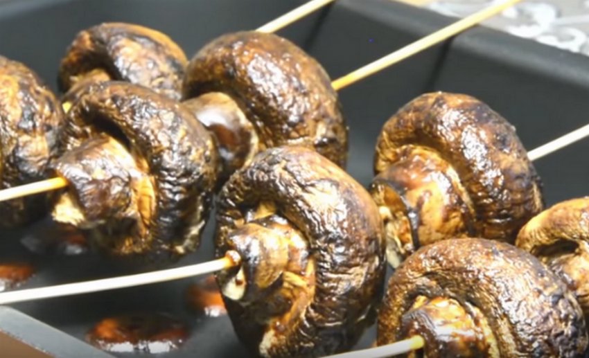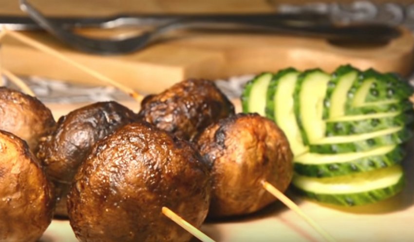 Запечені шашлики на шпажках можуть стати чудовою закусочною стравою як на пікніку, так і на святковому столі. Така апетитна закуска припаде до душі як вегетаріанцям, так і м'ясоїдам, адже здавна печериці називають "другим м'ясом" за своїми поживними та смаковими характеристиками.