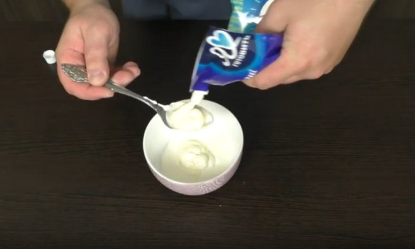 Для приготування соусу необхідно змішати в тарілці сметану, майонез, подрібнений кріп і . Усі інгредієнти потрібно ретельно змішати.![]()